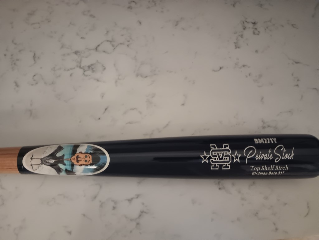 Handmade wood youth bat from Birdman Bats in Redwood City. 31". Main photo is a stock photo. See extra photo for color and logo detail, including SMLLA logo.